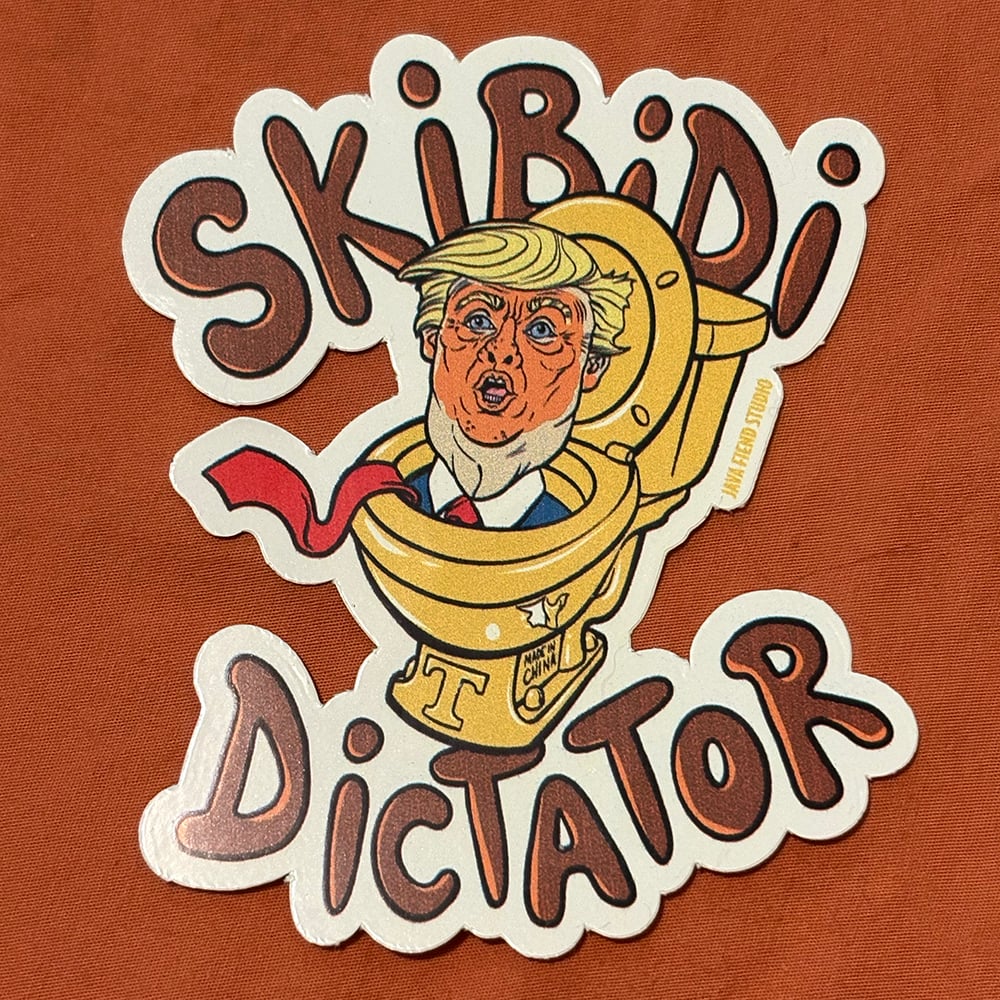 Send the orange wannabe dictator down the proverbial "golden toilet" with this 4.5" tall Vinyl sticker!